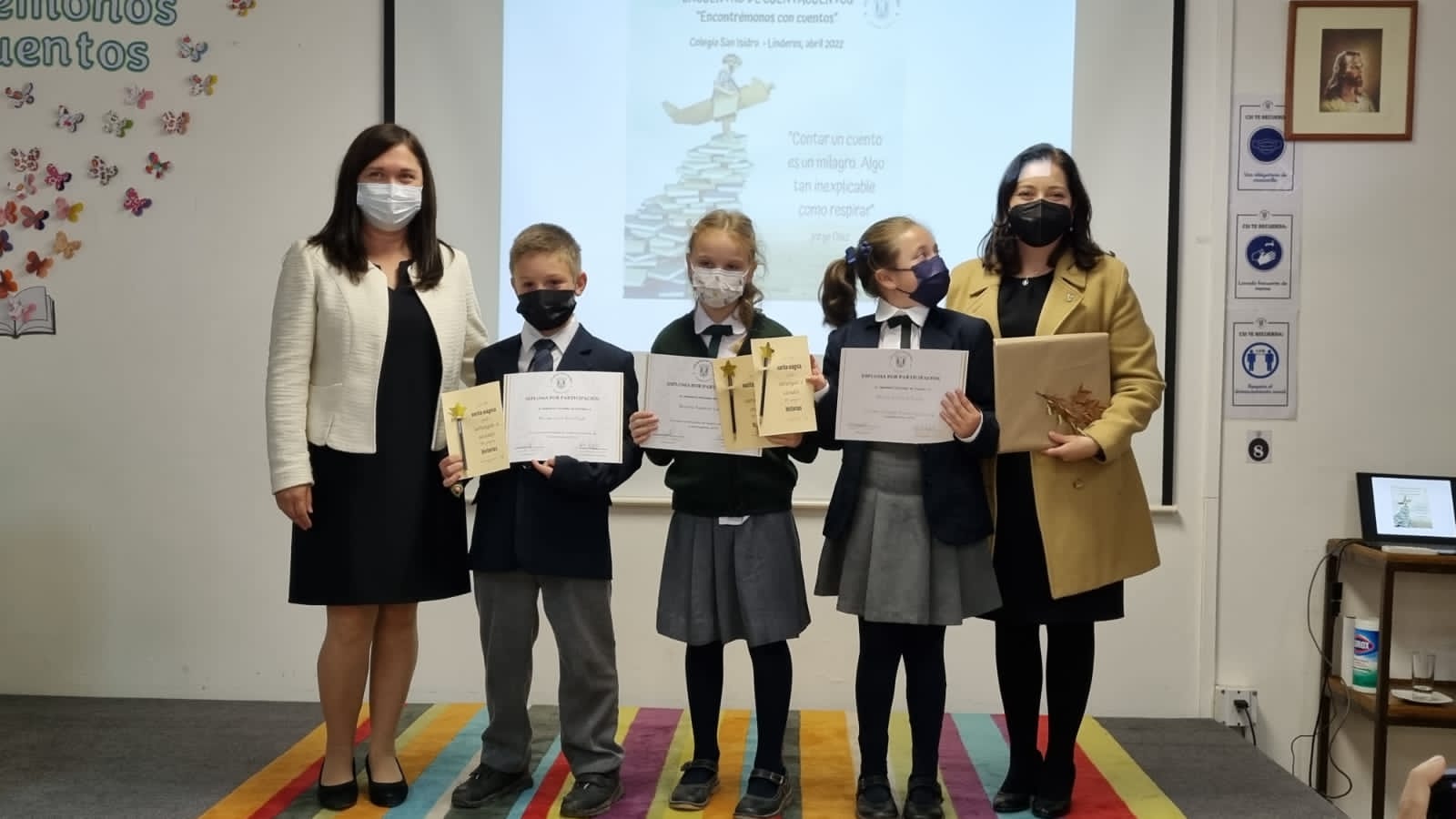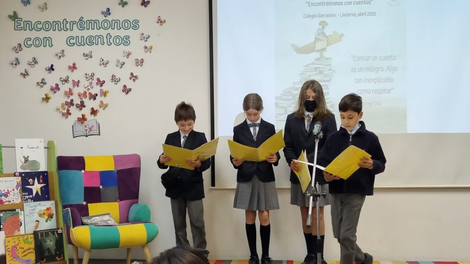 El jueves 21 de abril, en el colegio San Isidro, se realizó el primer encuentro cuenta cuentos entre colegios de la Red. La iniciativa nació en esa comunidad educativa, para ser desarrollada en el contexto de la celebración del Día del Libro. La jornada se tituló “Encontrémonos con cuentos”, aludiendo a la experiencia entre niños y colegios de la Red, en este tiempo de alejamiento por Pandemia. Así lo confirmó Consuelo Larrea, Encargada de Bilblioteca de San Isidro y responsable del evento, “nuestra intención no fue competir en un concurso sino encontrarnos nuevamente”.