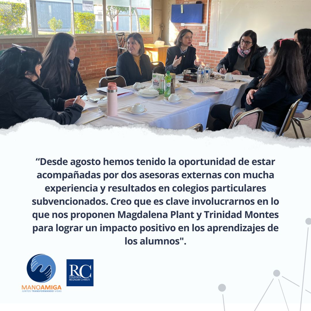 Tenemos la oportunidad de estar acompañadas por dos personas que tienen mucha experiencia en colegios particulares subvencionados y que han logrado resultados . Creo que es clave involucrarnos en lo que nos proponen Magdalena y Trinidad para lograr un impacto positivo en los aprendizajes de los alumnos.